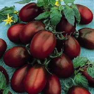 O Tomate Black Plum é uma variedade que produz tomates em formato oval, e escuros. São tomateiros muito produtivos. Tem o sabor suave e é ideal para saladas.